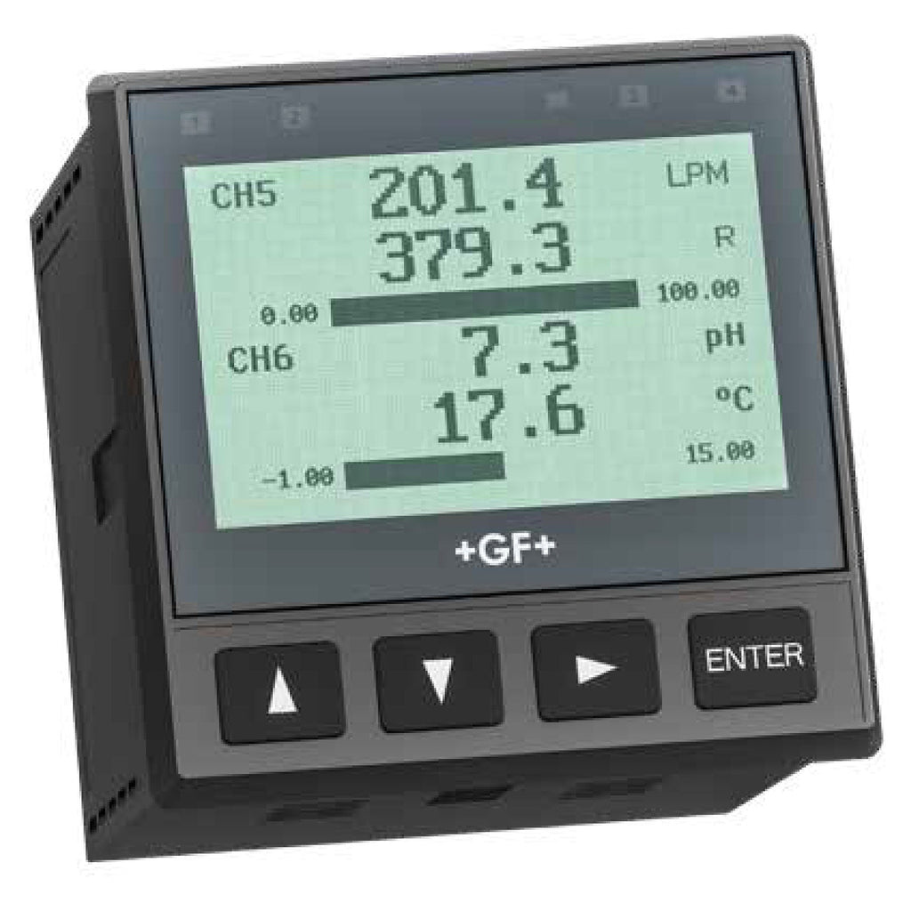 The 9950 is a multi-channel, multi-sensor transmitter designed to meet and exceed the industry standards, and expectations for a small, compact, 1/4 in. DIN Transmitter. The power and versatility of the 9950 allows the use of up to six GF sensors to manage complex water treatment applications.